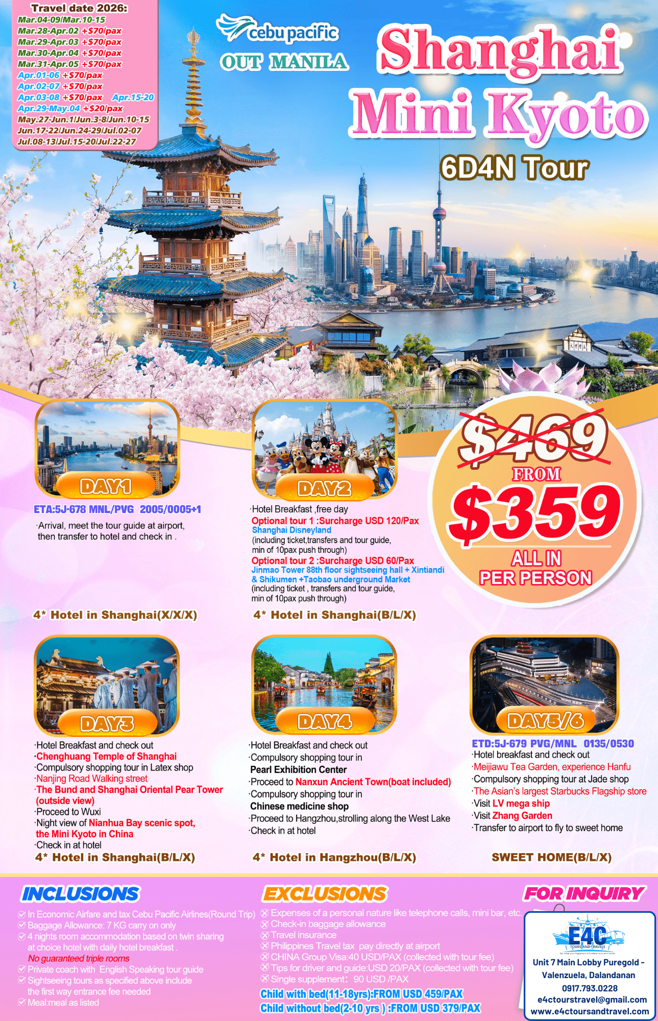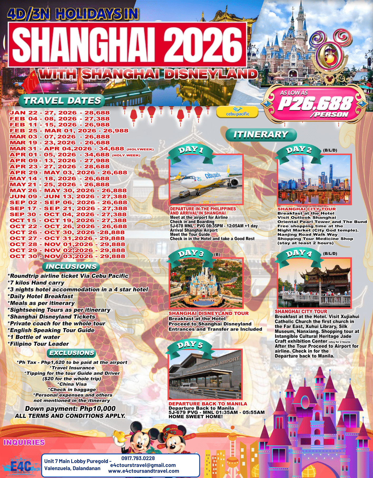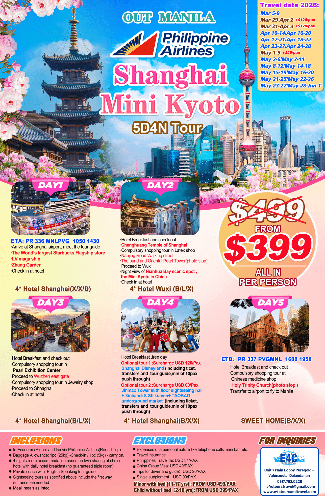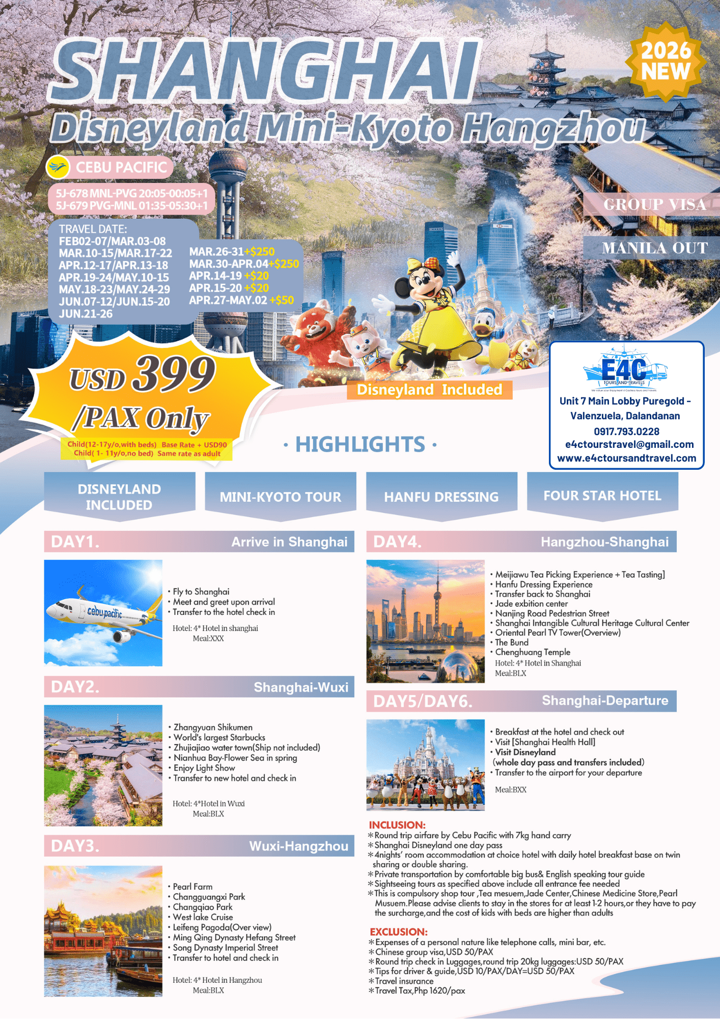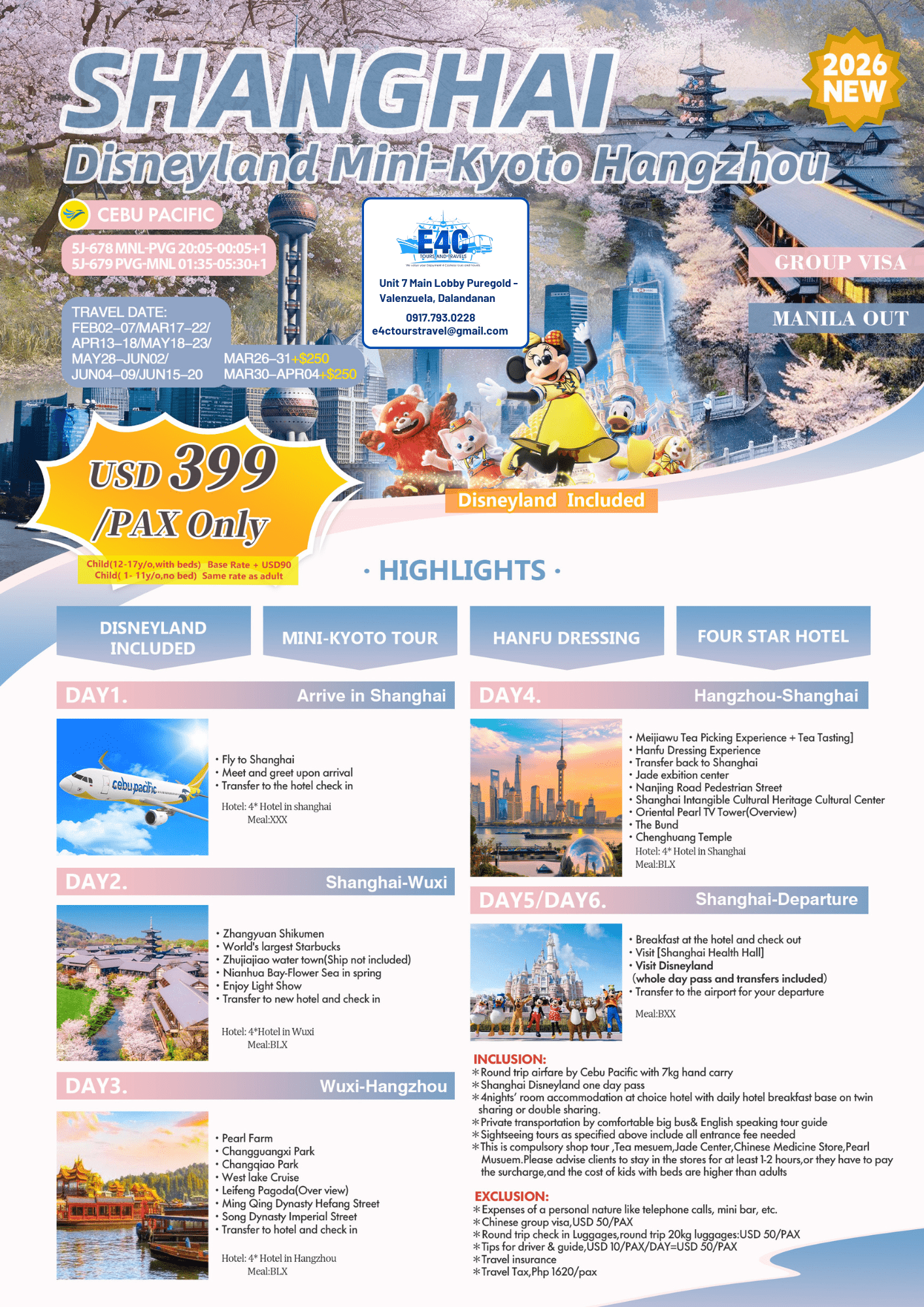 $ 399+,2026 Shanghai+Diseneyland 6D4N Package
