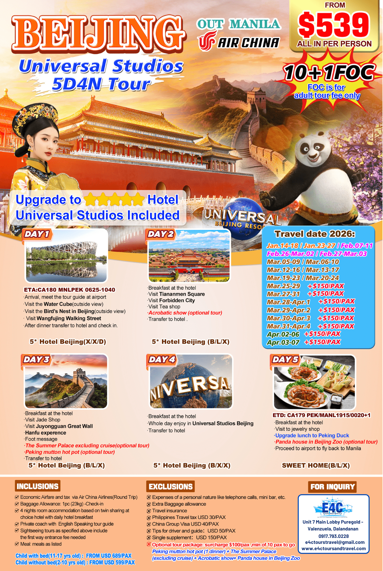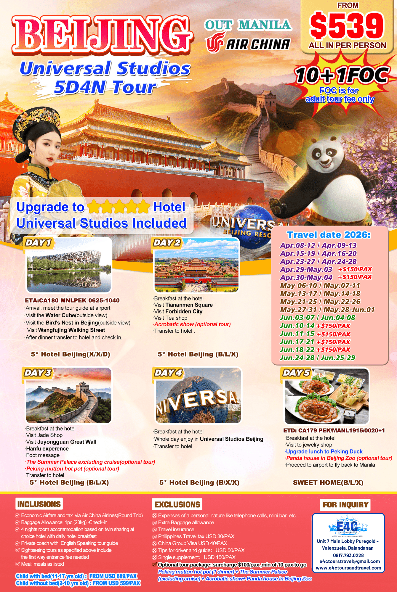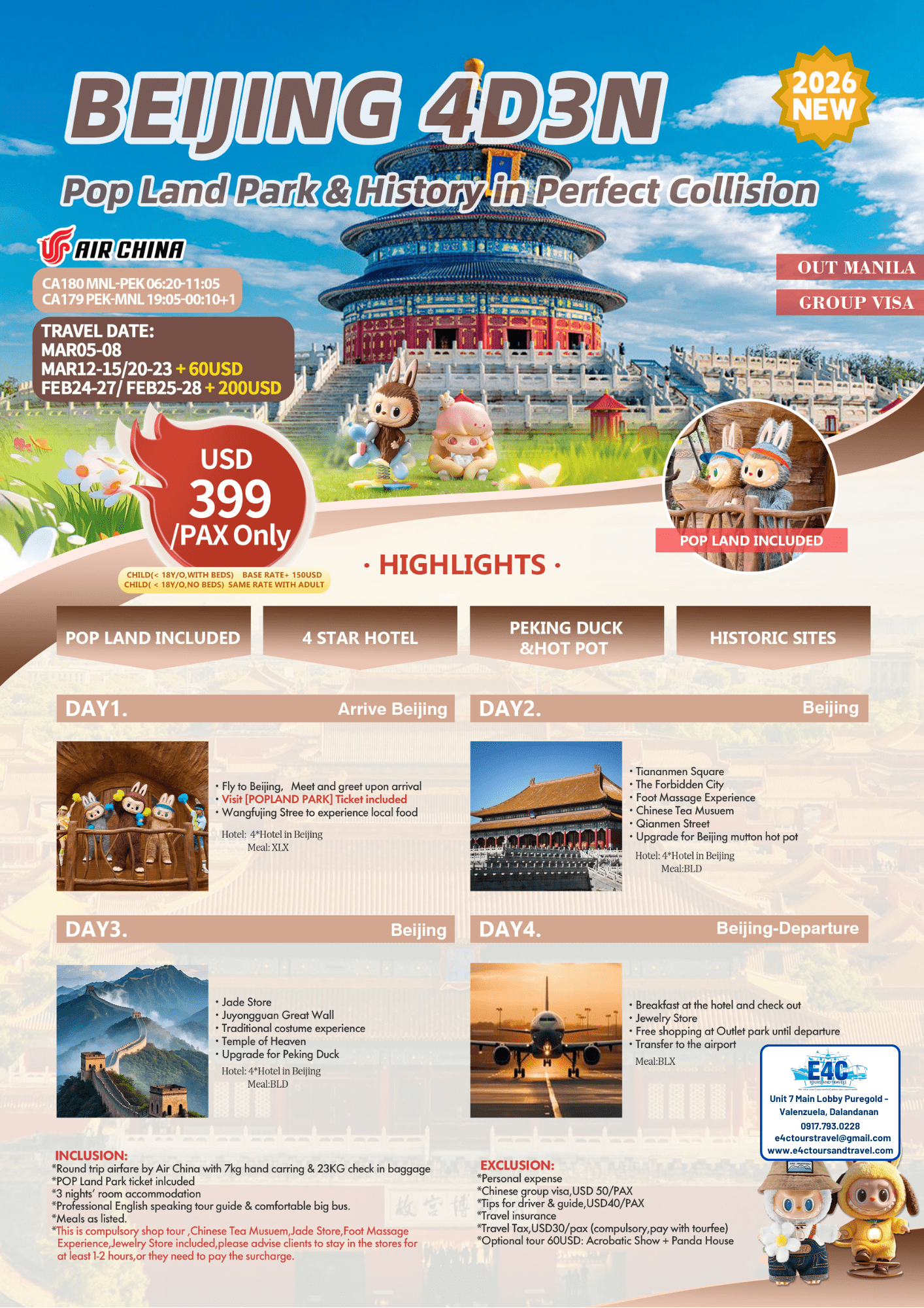 $399+ 2026 Beijing The Great Wall & POPLAND Park 4D3N Package (2)