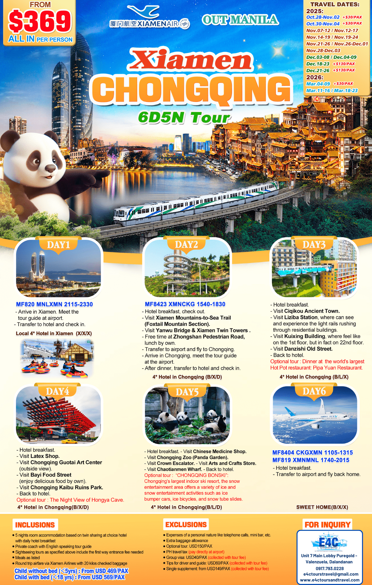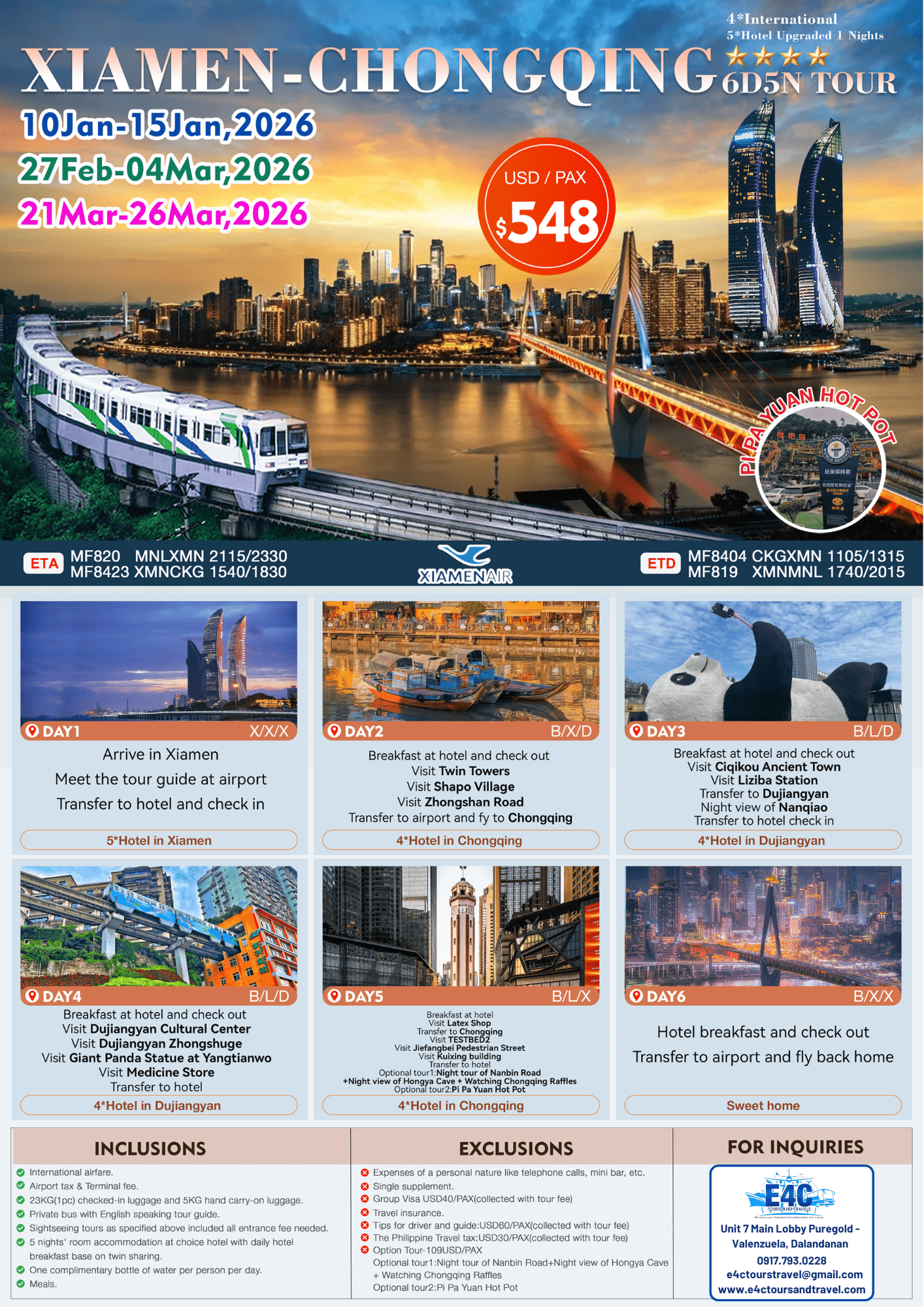 XIAMEN+CHONGQING 6D5N TOUR via MF(updated)