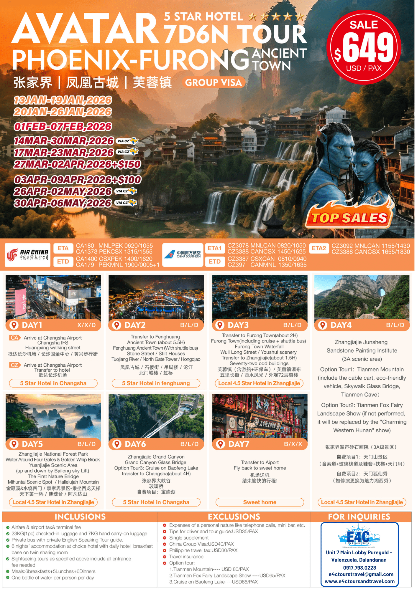 2025-2026 Avatar- Phoenix - Furong Ancient Town 7D6N Tour