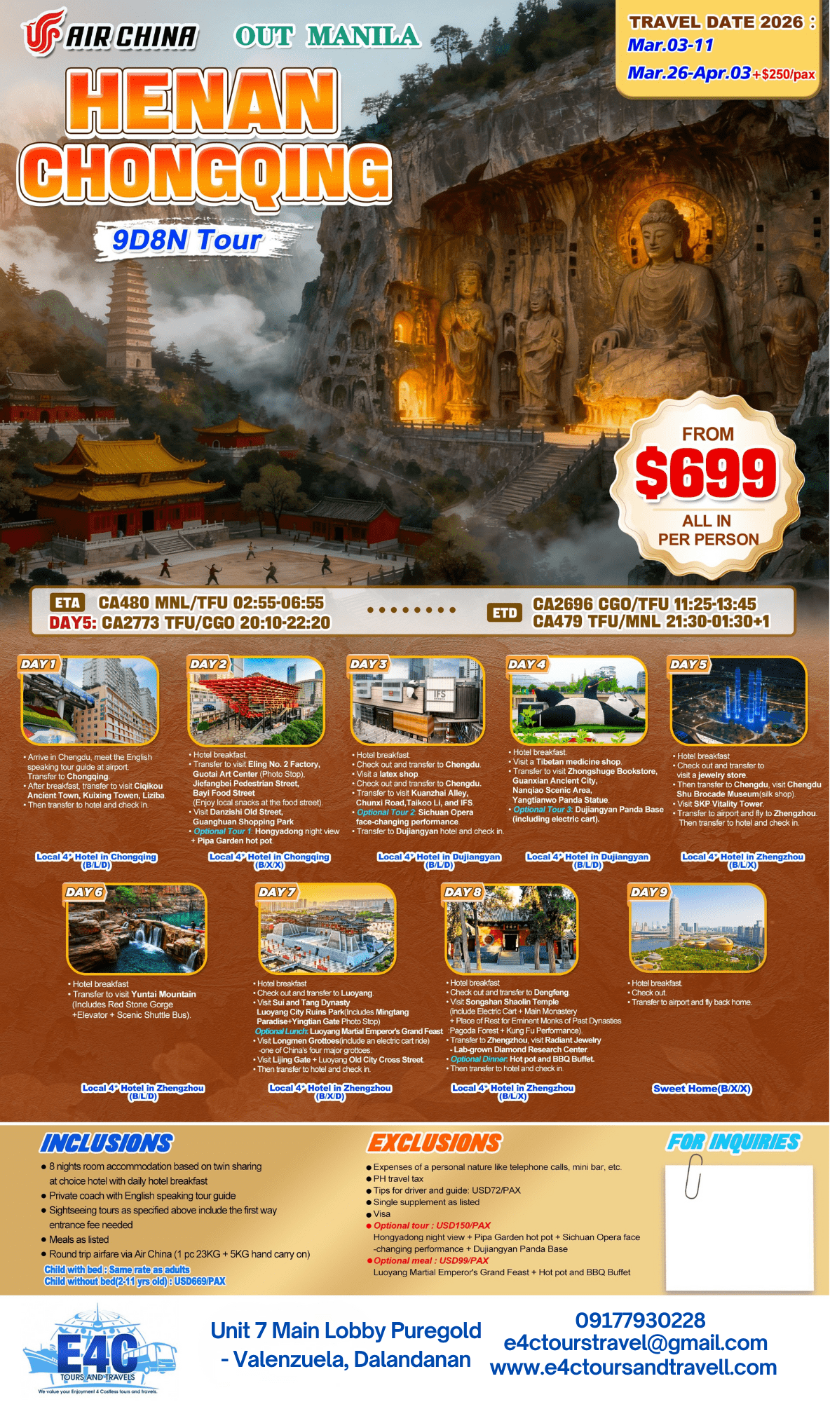 $699 HENAN CHONQING 9D8N