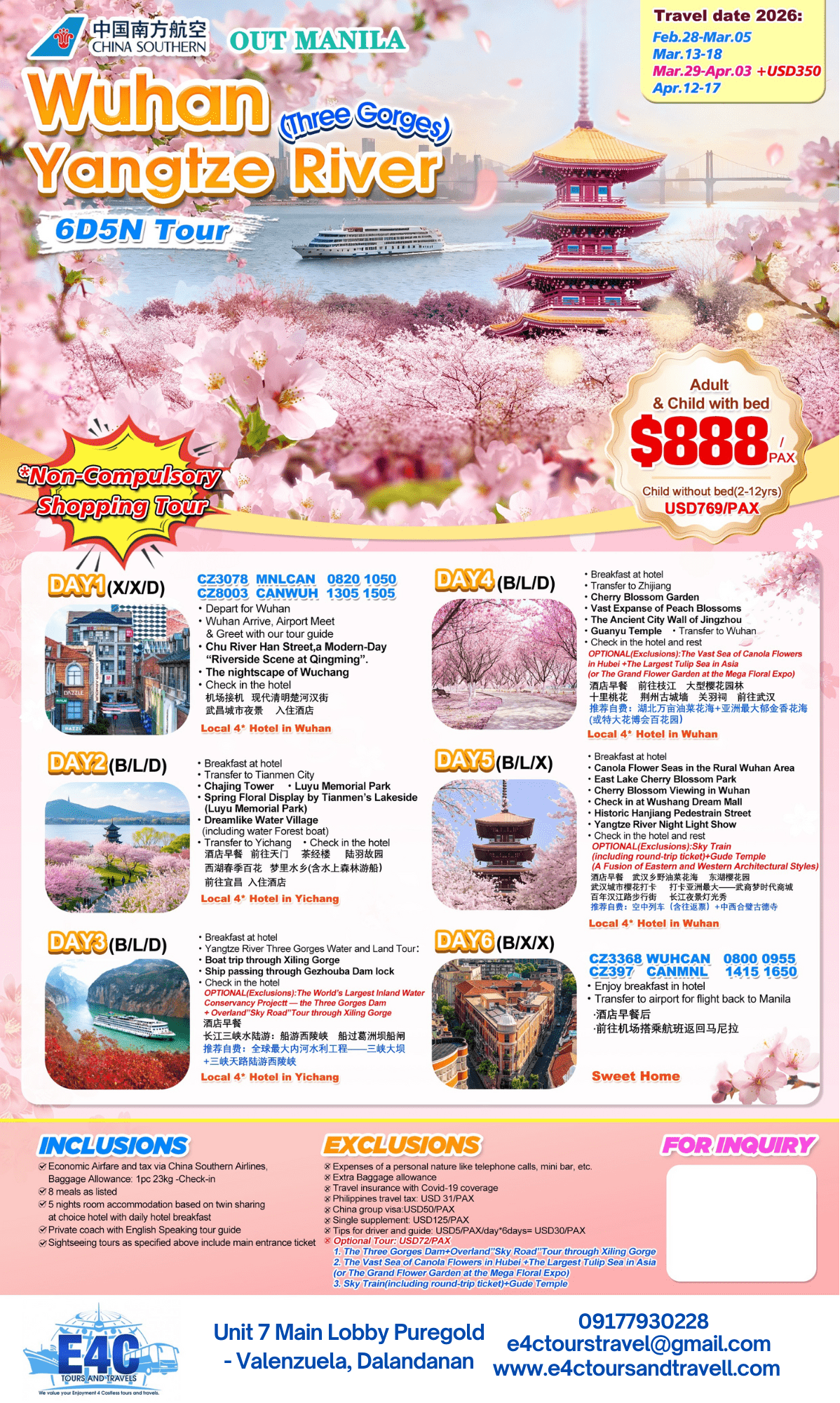 $888 WUHAN 6D5N YANGTZE RIVER