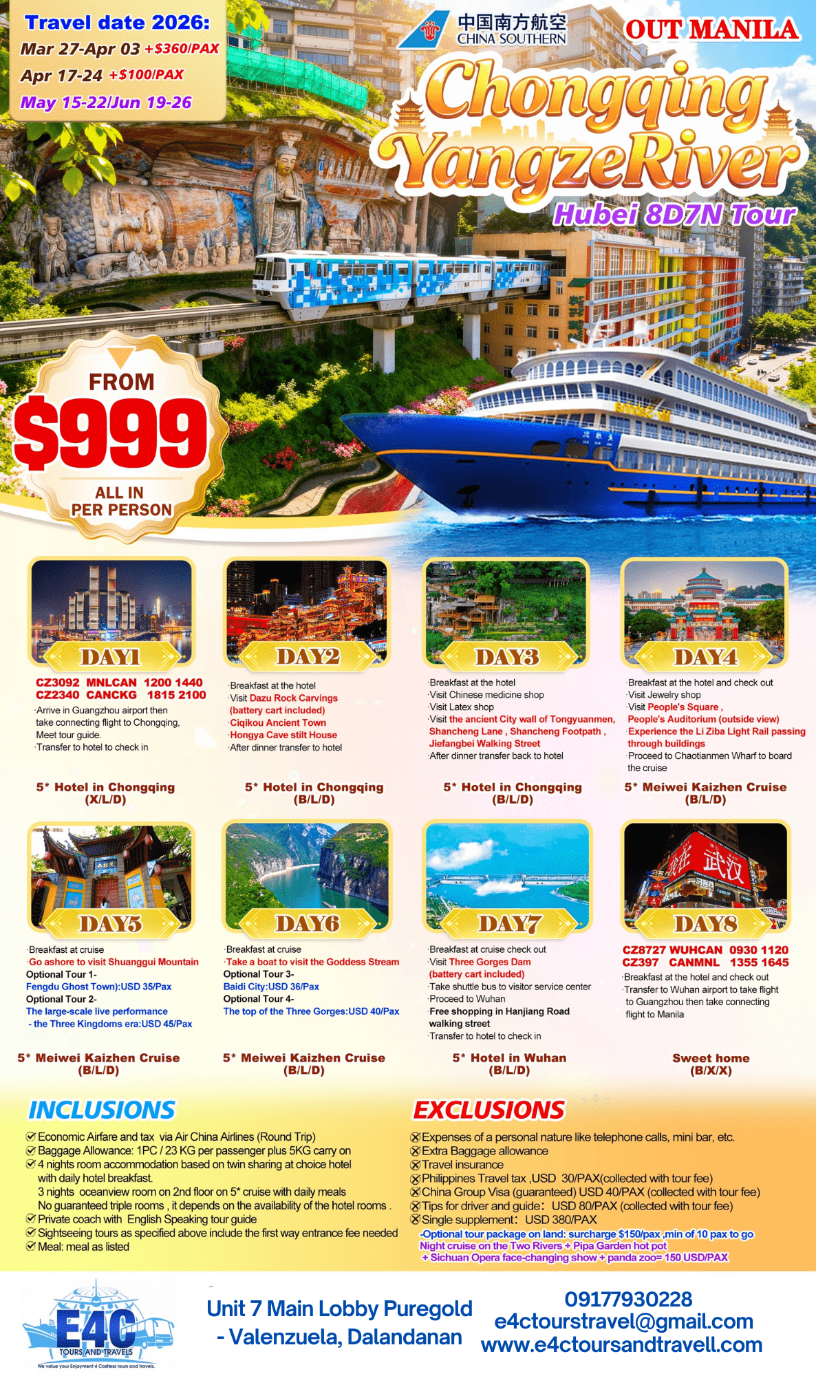 $999 8D7N CHONGQING YANGZERIVER