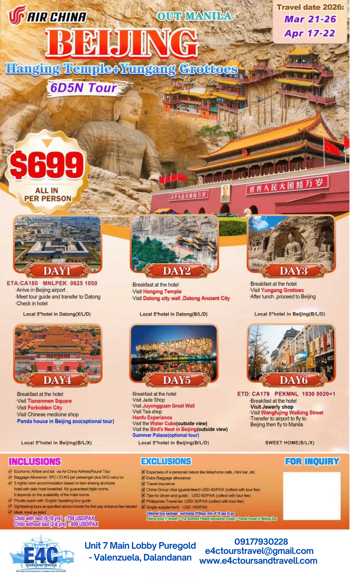 Jan-Jun 2026 Manila Beijing Shanghai 6D5N Tour
