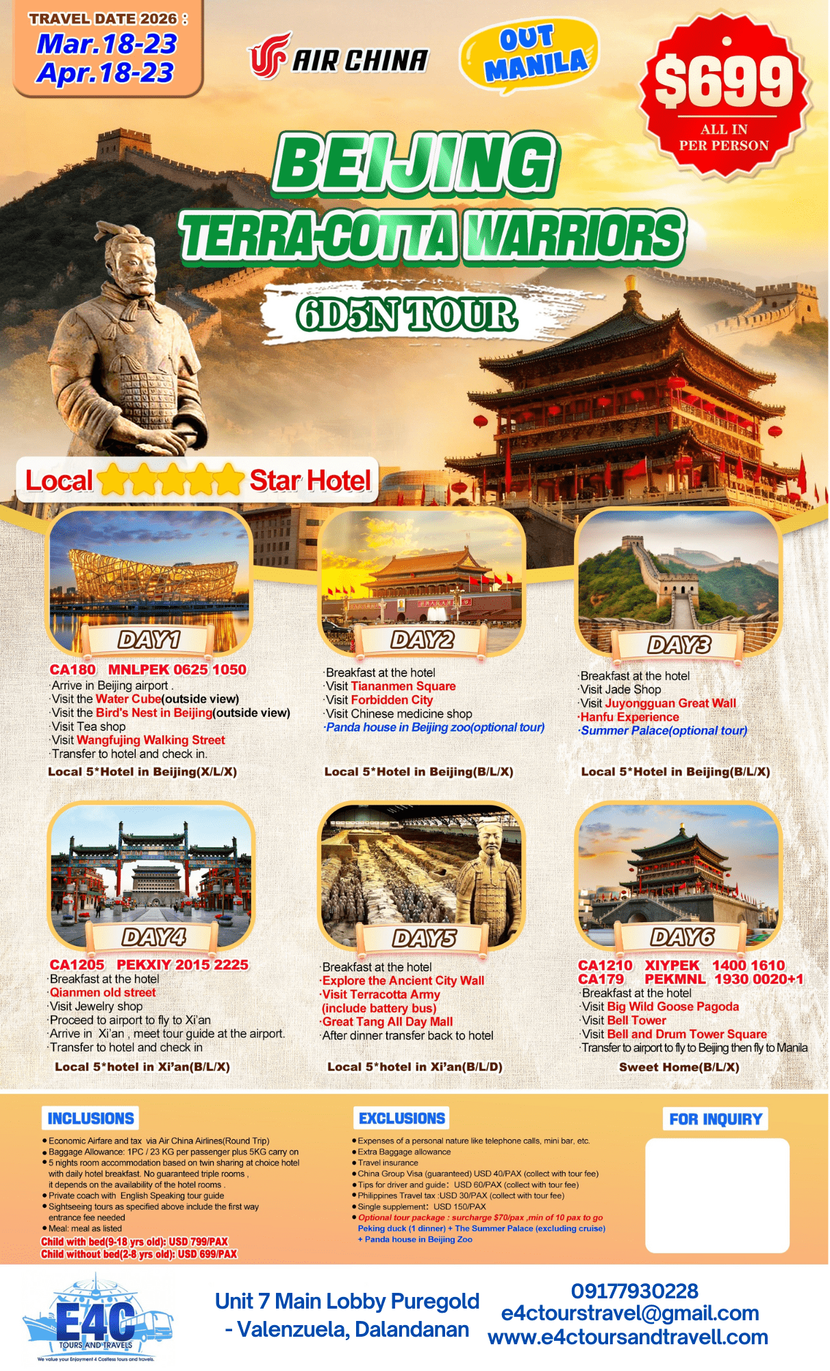 BEIJING TERRA-COTTA WARRIORS 6D5N $699