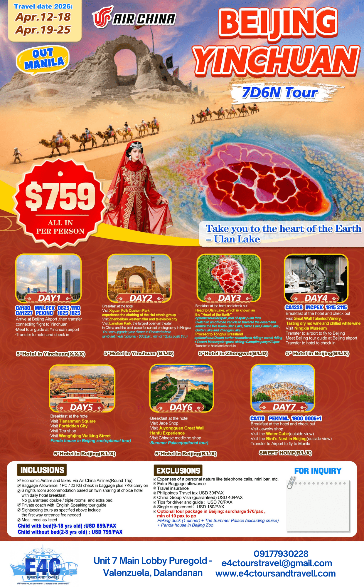 BEIJING-YINGCHUAN 7D6N $759