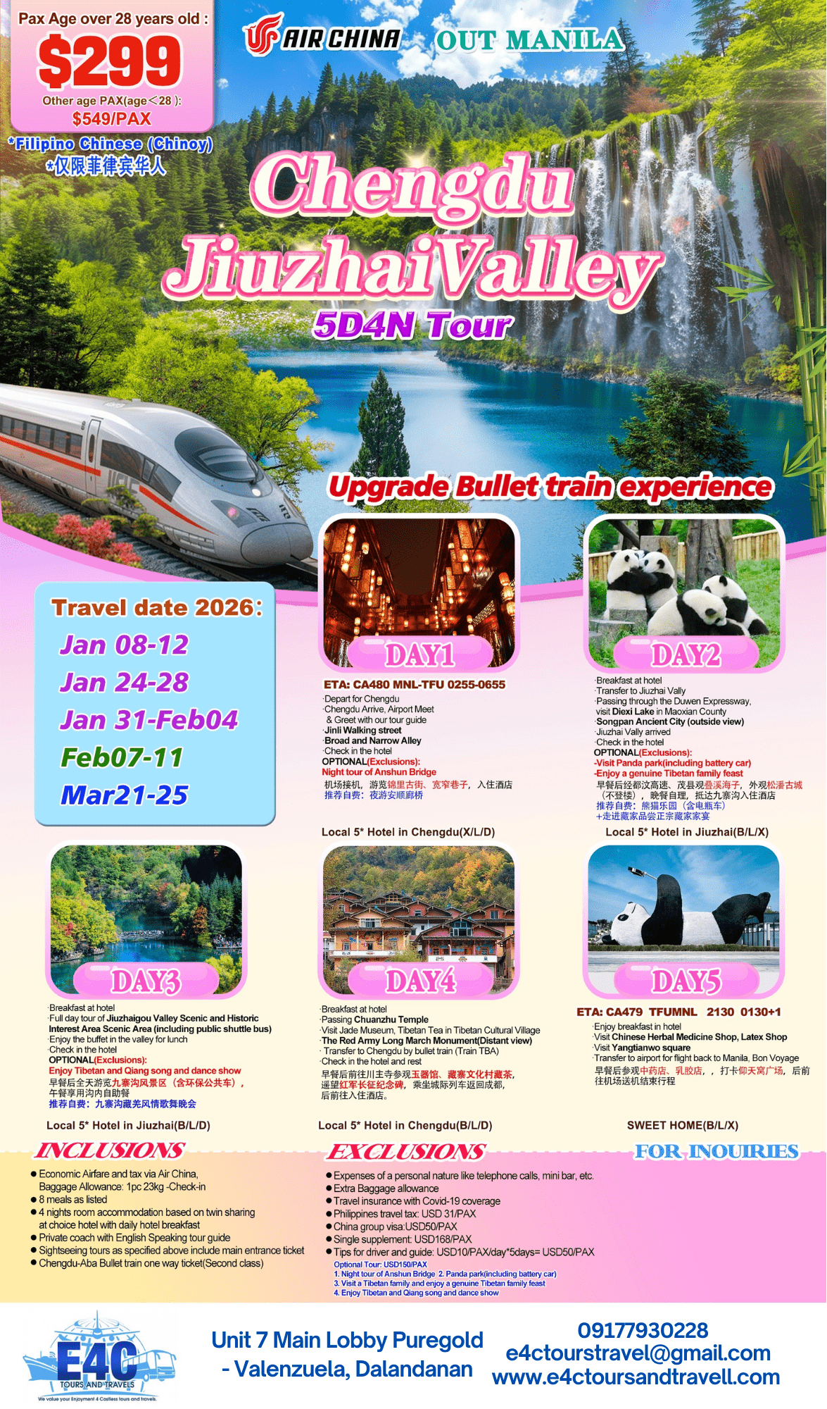 CHENGU-JIUZHAI VALLEY 5D4N $299