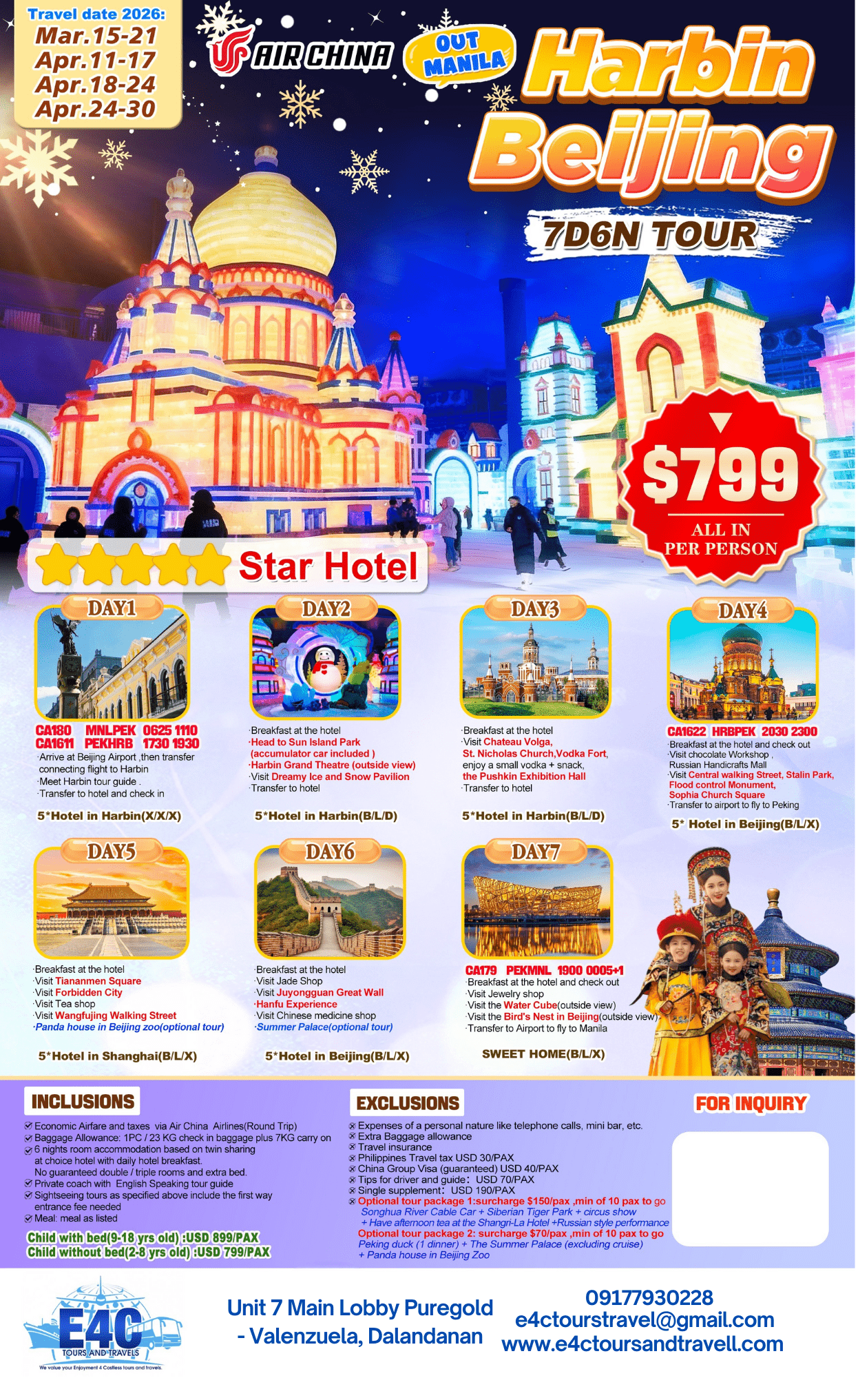 HARBIN BEIJING 7D6N $799