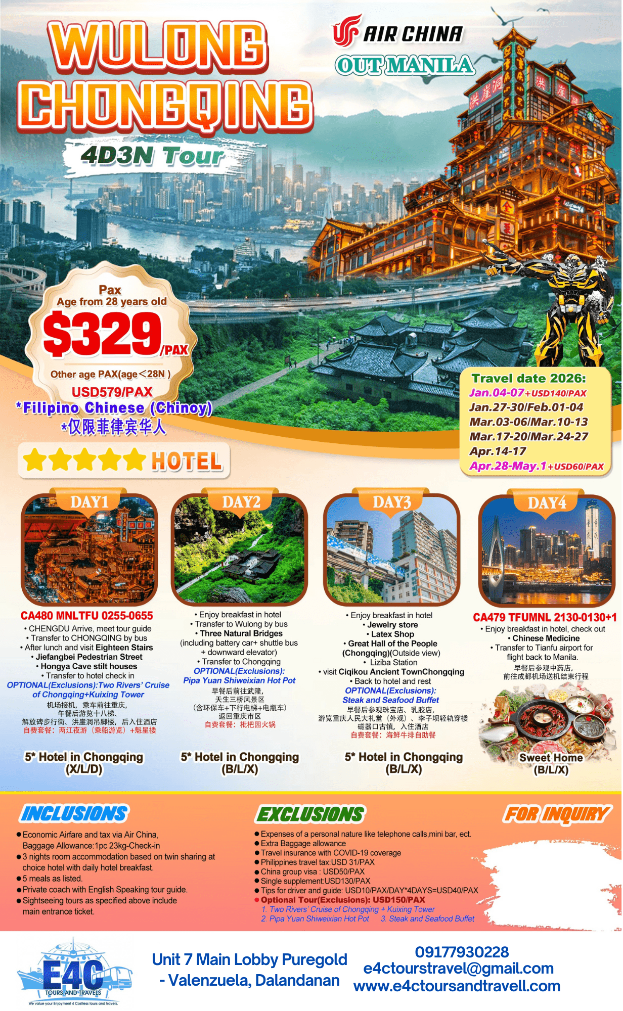 WULONG CHONGQING 4D3N $329