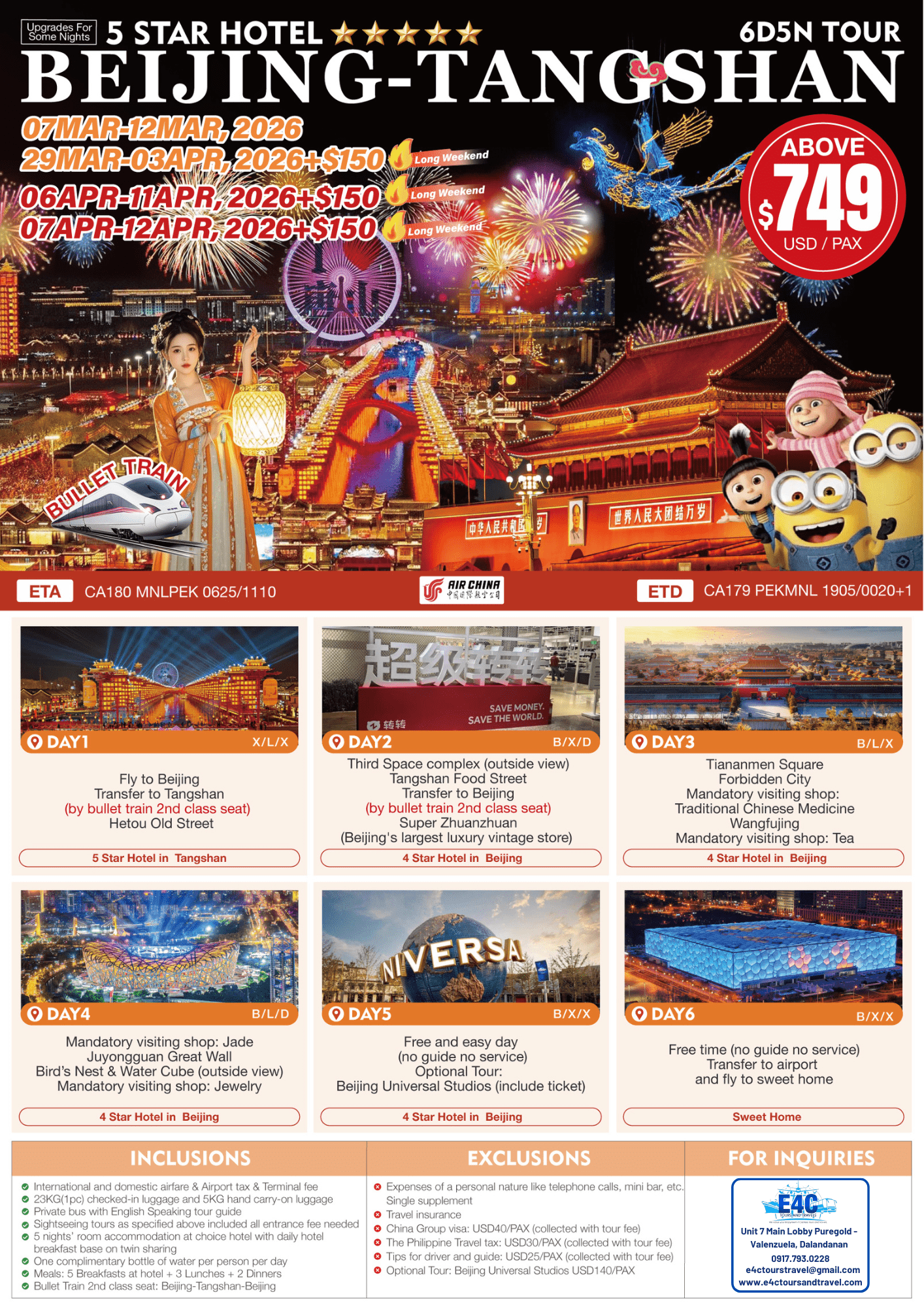 2026 Apr-Jun CA Beijing Universal Studios 5D4N Tour