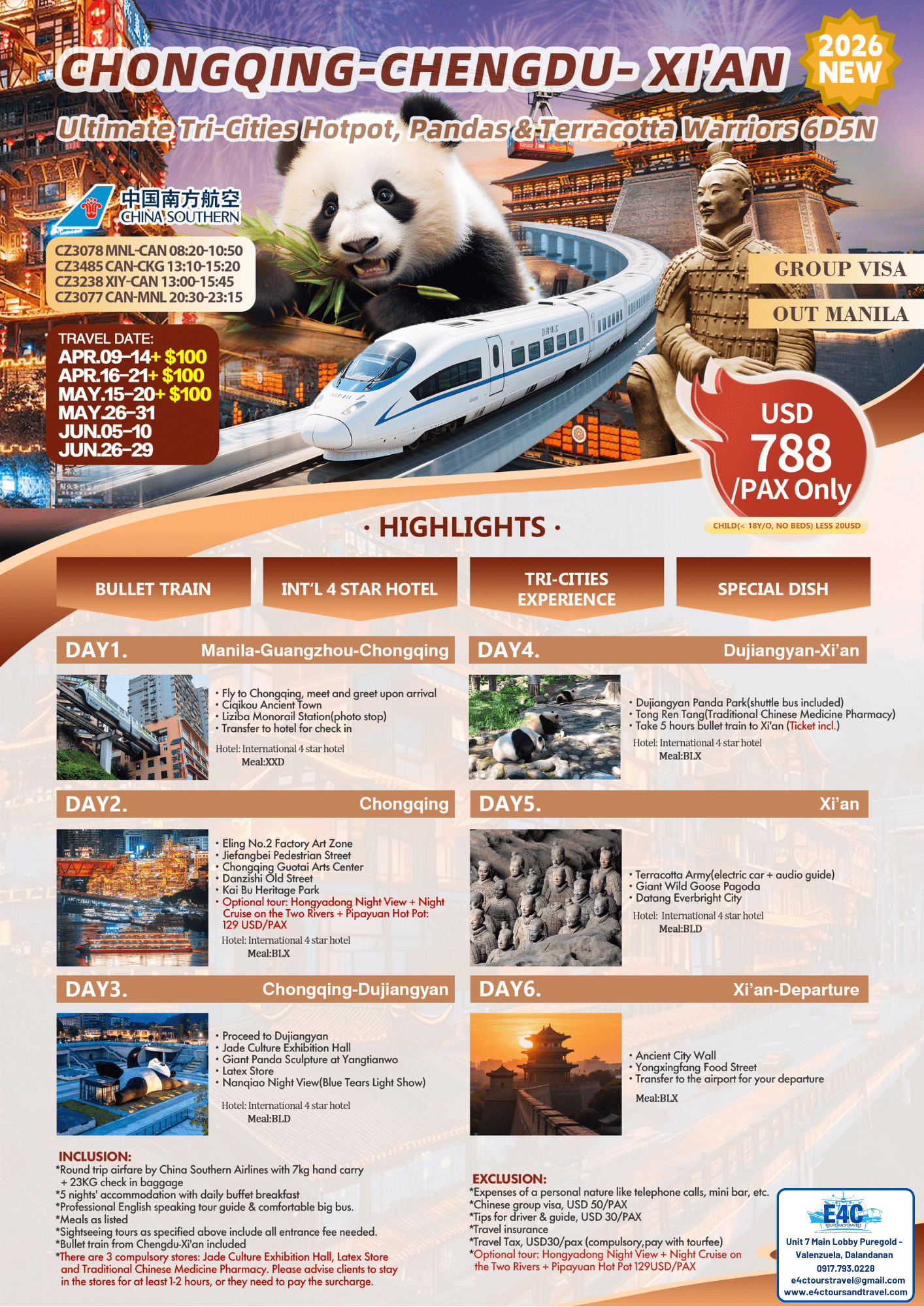 1【CX】$ 788 Chongqing-Chengdu-Xi'an Tri-Cities 6D5N ALL IN Package (2)
